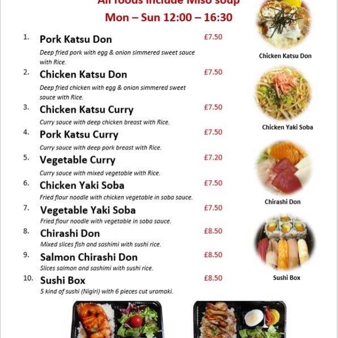 All served with Rice and Miso soup. Deep fried Pork with Curry sauce